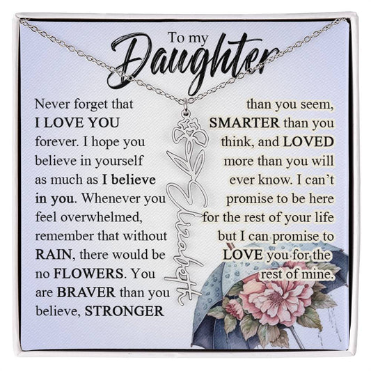 To My Daughter "No Rain, No Flowers" Custom Name Flower Necklace